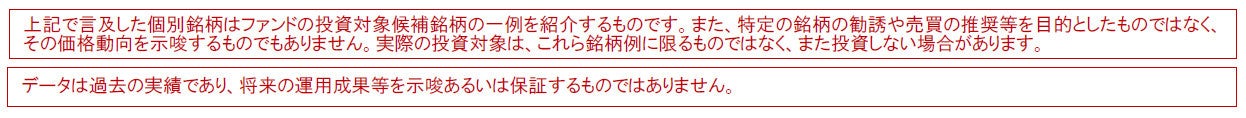 ●投資信託は、値動きのある有価証券等(外貨建資産に投資する場合は、為替変動リスクもあります)に投資いたしますので、基準価額は変動します。したがって、投資者の皆さまの投資元本が保証されているものではなく、基準価額の下落により、損失を被り、投資元本を割り込むことがあります。