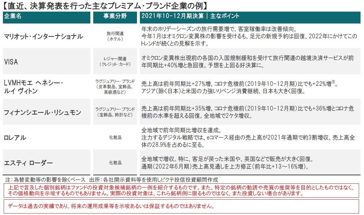 プレミアム・ブランド企業の利益成長見通しは依然として良好であるとみています。コロナ危機からの経済正常化の流れが続き、ラグジュアリー商品などを中心に「リベンジ消費」は引き続き旺盛です。