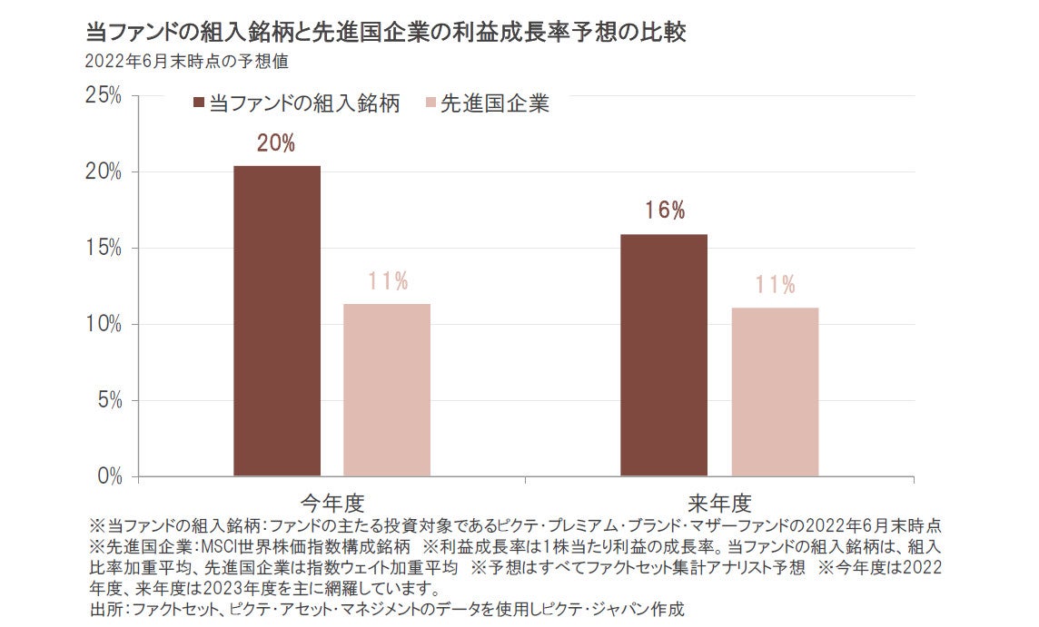 さらに、世界的なインフレにより、製造業などを中心に企業のコスト負担増加が懸念されていますが、強力なブランド力があるプレミアム・ブランド企業は、比較的容易にコスト負担増加分を販売価格へ転嫁(値上げ)することができるため、相対的に高い収益性を維持することも可能であると予想されています。