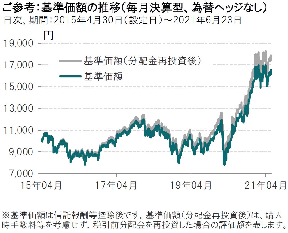●投資信託は、値動きのある有価証券等(外貨建資産に投資する場合は、為替変動リスクもあります)に投資いたしますので、基準価額は変動します。したがって、投資者の皆さまの投資元本が保証されているものではなく、基準価額の下落により、損失を被り、投資元本を割り込むことがあります。