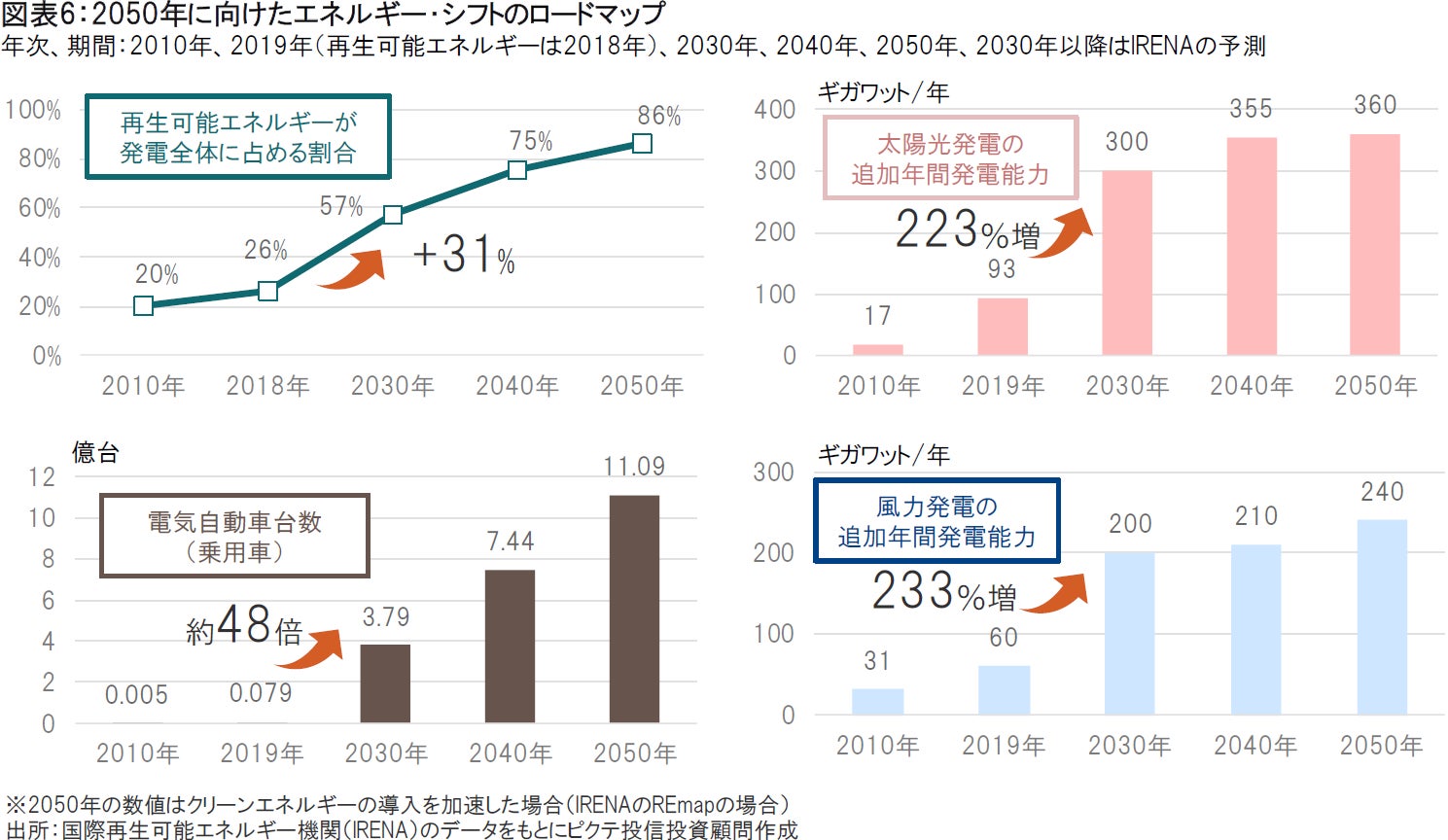 この「エネルギー変革シナリオ」では、2020年代に環境関連の投資が加速することが想定されています(図表6参照)。
