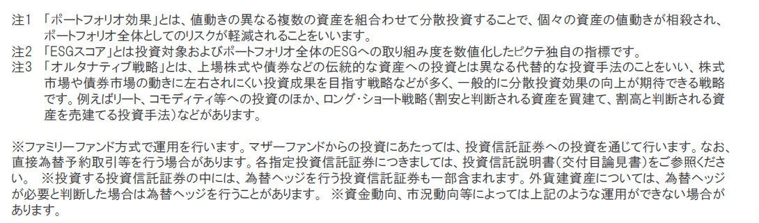 ●当資料はピクテ・ジャパン株式会社が作成した販売用資料であり、金融商品取引法に基づく開示書類ではありません。取得の申込みにあたっては、販売会社よりお渡しする最新の投資信託説明書(交付目論見書)等の内容を必ずご確認の上、ご自身でご判断ください。