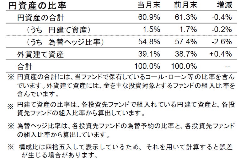 運用方針:債券や金を削減し、キャッシュの組入れを拡大