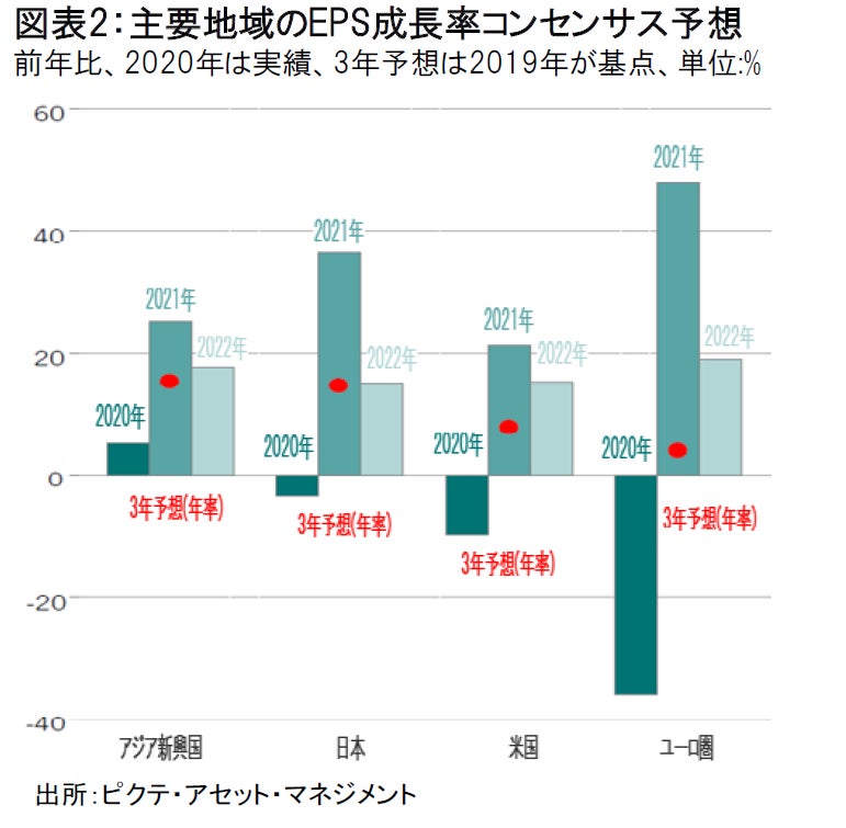また、世界の貿易量回復の恩恵を受けると考える日本の株式についても引き続き注目しています。日本企業の今年度の増益率予想は、新興国や米国を上回る水準に達しています。