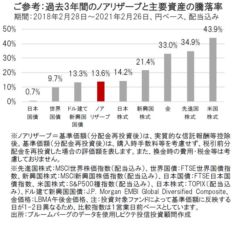 ノアリザーブと主要資産の騰落率