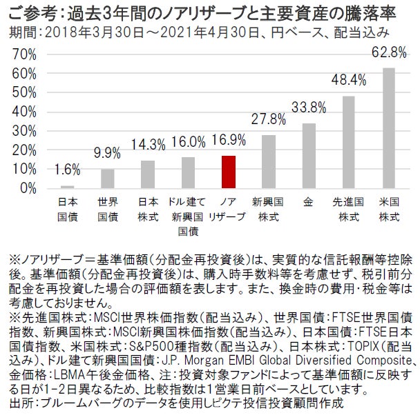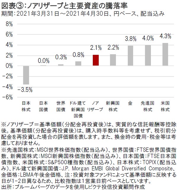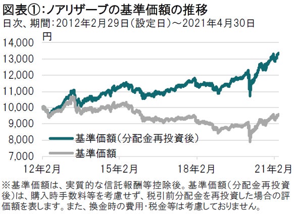 このような状況下、ノアリザーブの基準価額(分配金再投資後)は上昇しました(図表③参照)。