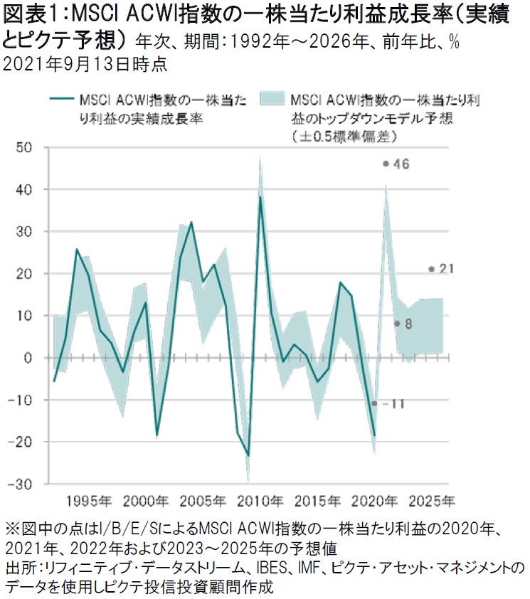 次に、新型コロナウイルスの新規感染者数がピークを付けたと考えられます。また、FRBは量的金融緩和の拙速な縮小を望んでいるとは思われないことから、金融政策も引き続き相場の支援材料になると考えています。企業業績も好調です。ピクテのモデルでは、米国企業に関して、他の先進国や新興国の企業以上に、アナリストによる業績予想の上方修正におけるモメンタムが強く出ていることが示されています。