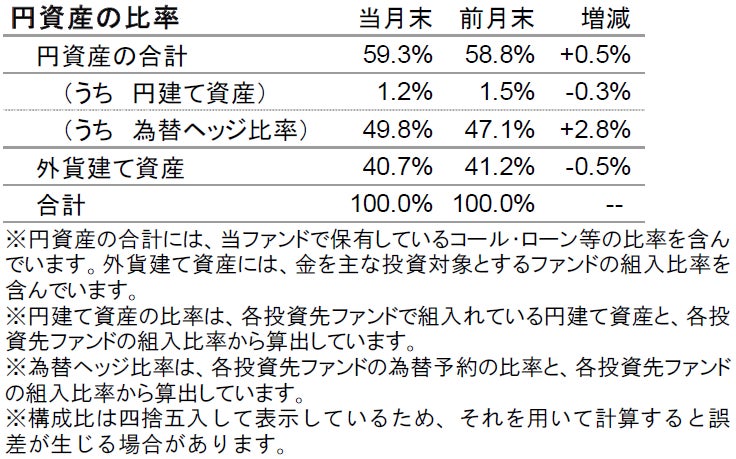 債券部分では、世界経済の景気回復ペースの鈍化などを背景に長期金利の低下余地は依然として残されているとの見方から、米ドル建て公共債券や米国超長期国債、ユーロ建て債券などを追加で買い増し、ポートフォリオの金利感応度を引上げました。