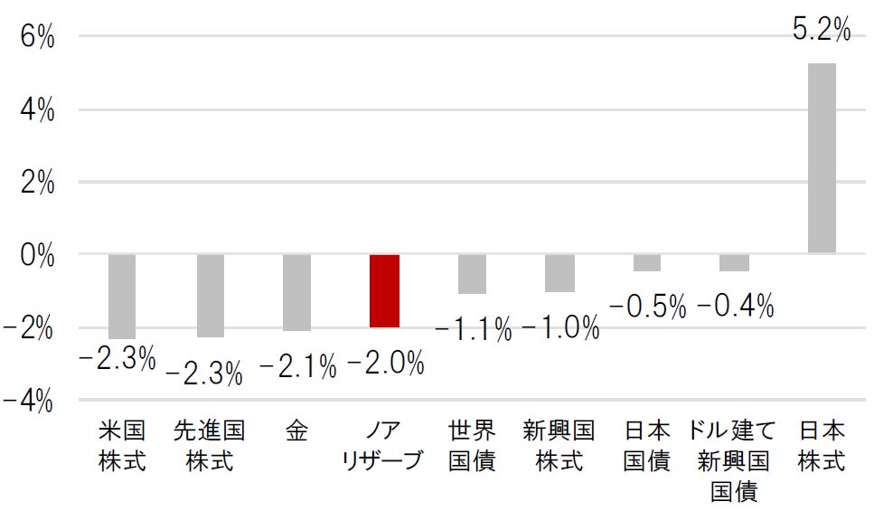 2021年9月は、日本株式を除き世界の株式市場は下落したことに加え、また債券市場、金市場も下落しました(円ベース)。このような状況下、ノアリザーブの基準価額(分配金再投資後)も下落しました(図表③参照) 。