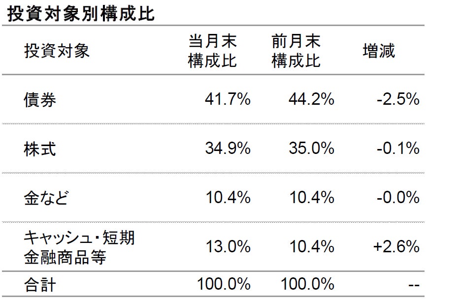 運用方針:債券の組入れを引下げ、キャッシュの比率を引き上げる