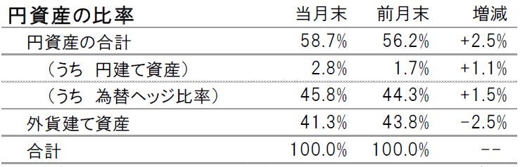 ※為替ヘッジ比率は、各投資先ファンドの為替予約の比率と、各投資先ファンドの組入比率から算出しています。