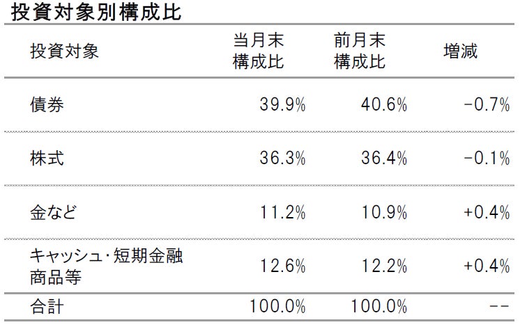 運用方針:債券の組入れを引き下げ、金やキャッシュの比率を引き上げる
