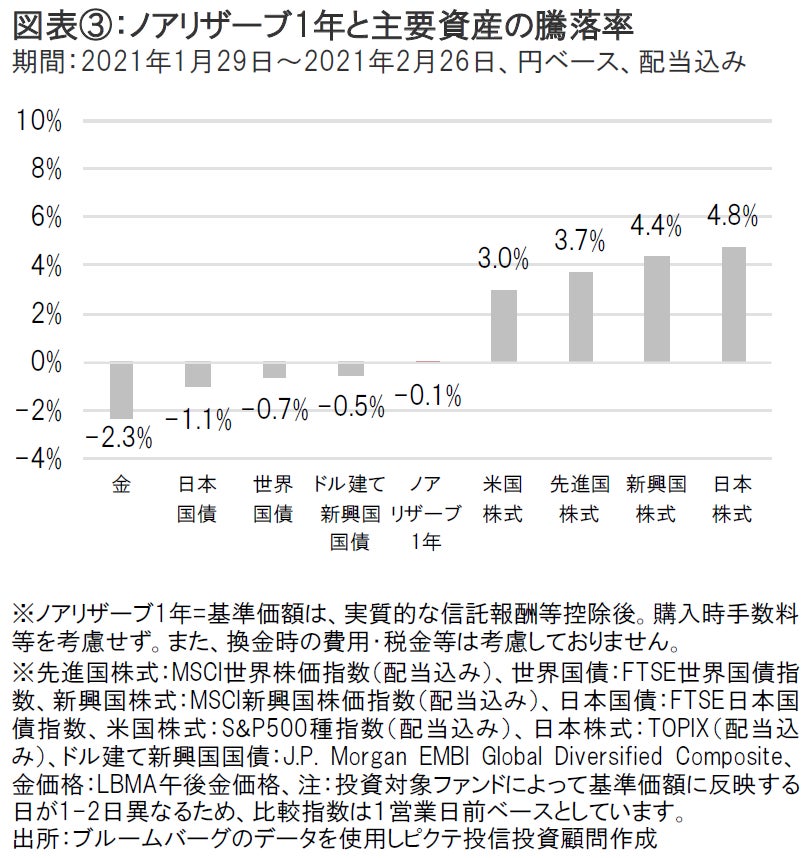 このような状況下、ノアリザーブ1年の基準価額は下落しました(図表③参照)。