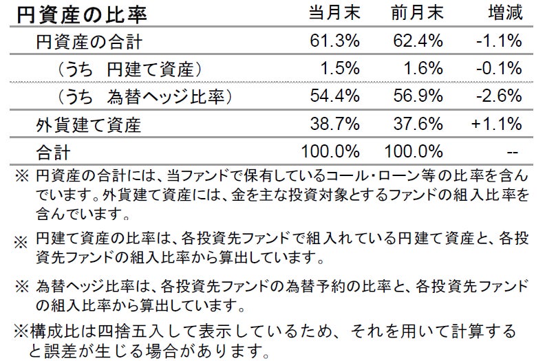 株式部分では、金利の上昇圧力が強まる中、公益関連銘柄に多く投資する世界ウォーター関連株式を一部売却しました。一方で、堅調な景気見通しのもとで新興国株式の組入れを引き上げました。その他、投資テーマを分散するため、世界環境関連株式からテーマ戦略株式に一部資金をシフトするなどしました。
