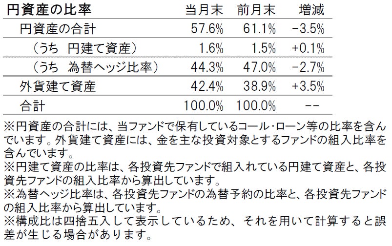 当月の投資行動は、資産配分では金の組入れの一部を債券にシフトするなどしました。