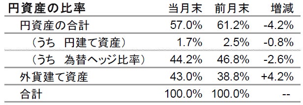なお、円資産の比率は、前月末より低下し57.0%となりました。