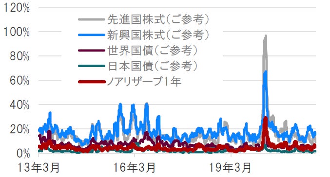 図表②:ノアリザーブ1年と主要資産のリスク推移