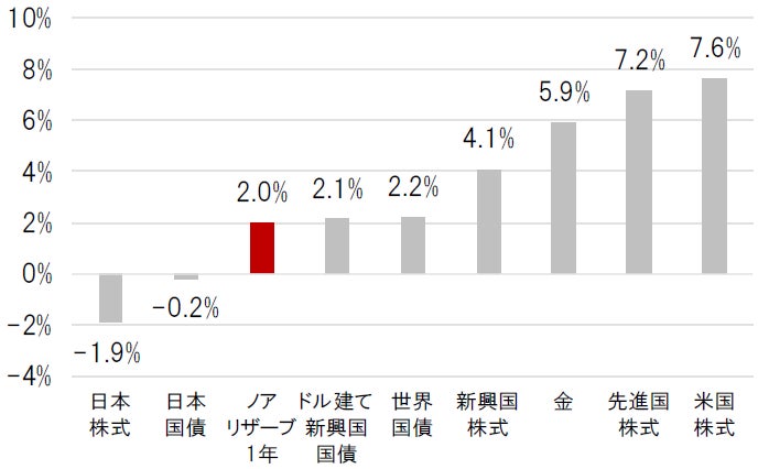 図表③:ノアリザーブ1年と主要資産の騰落率