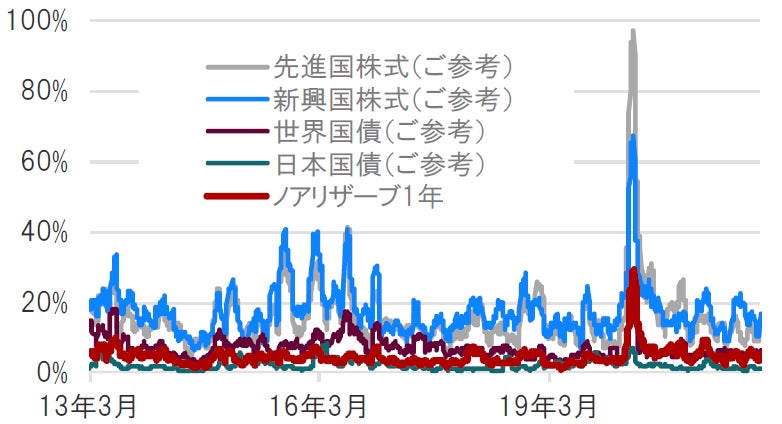 図表②:ノアリザーブ1年と主要資産のリスク推移