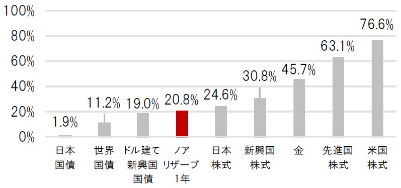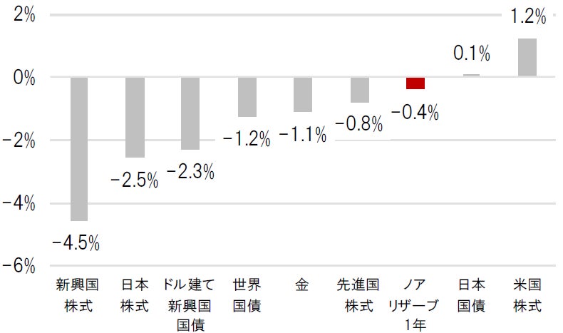 図表③:ノアリザーブ1年と主要資産の騰落率