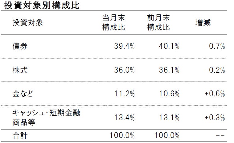 運用方針:債券の組入れを引き下げ、金やキャッシュの比率を引き上げる