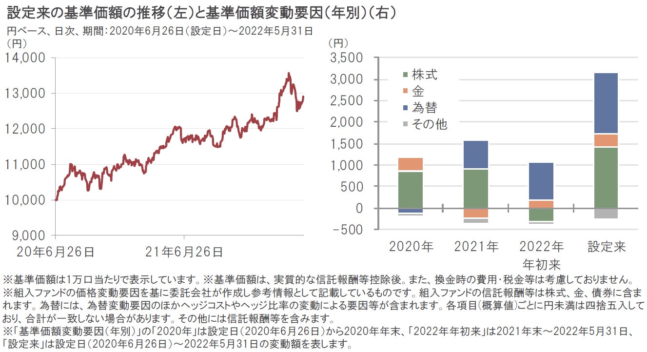 ●設定来の株式と金を半分ずつ保有という基本資産配分がパフォーマンスに寄与