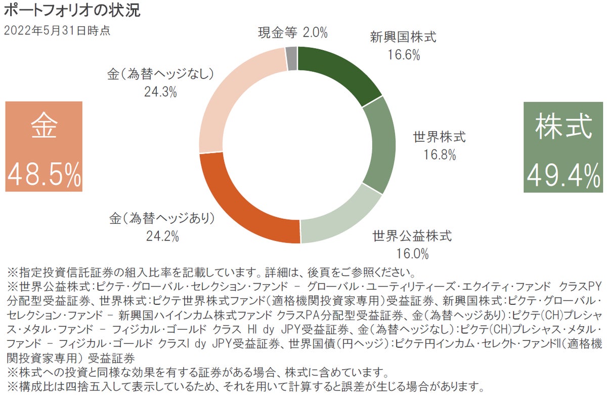 ポラリスは市場環境に応じて基本資産配分を変更~足元は、株式と金を約半分ずつ保有