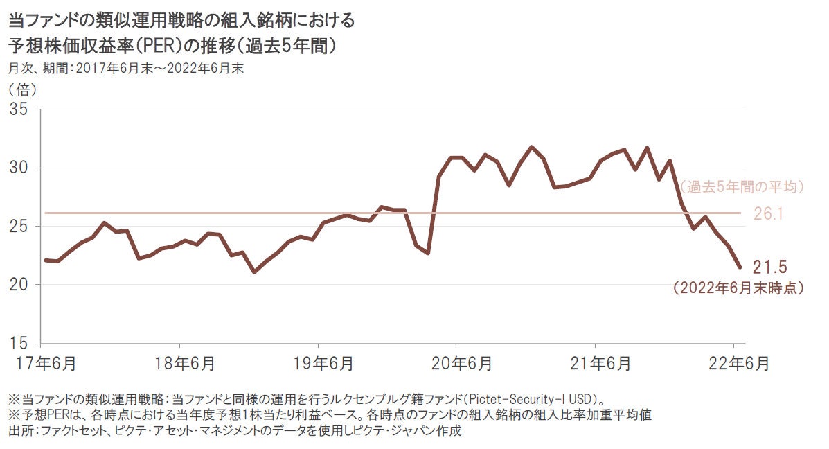 昨年までの堅調な株価推移を背景にセキュリティ関連企業の株式のバリュエーションは、高水準にありました。足元の株価下落により、この水準は低下しています。特に、中長期的な成長期待が高く、かつ、強固なファンダメンタルズ(基礎的条件)を持つ銘柄については、バリュエーションが低下したことで、投資の魅力が再び高まっている可能性もあるとみています。