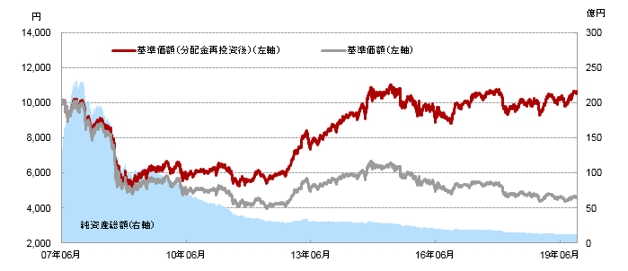 基準価額は、信託報酬率等控除後。基準価額(分配金再投資後)は、購入時手数料等を考慮せず、税引前分配金を再投資した場合の評価額を表します。