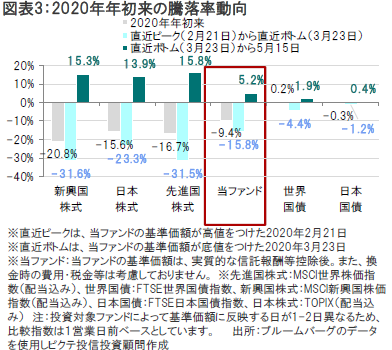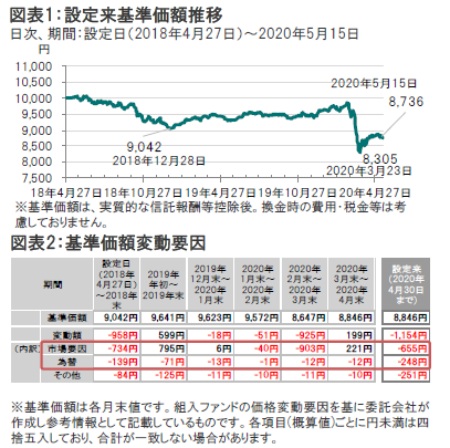 当ファンドの基準価額動向をみると、これまで2019年年初来、2020年2月半ばまでは緩やかながらも上昇基調が続いてきました。しかし、その後、3月後半にかけては新型コロナウイルスの世界的感染拡大を受けて、世界の金融市場が大きく変動するなか、当ファンドの基準価額も下落しました。足元では、3月23日を底に反発の兆しもみられています。当ファンドにおいても、株式市場の戻りを背景に、基準価額は回復しつつあります。