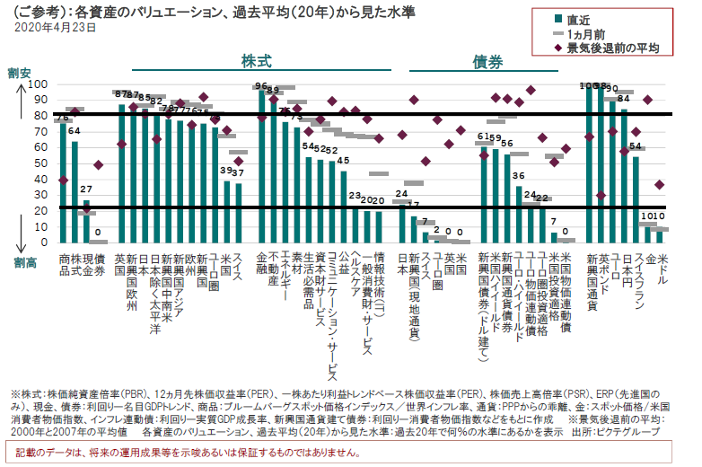また、各国で打ち出されている大規模な金融・財政政策が世界経済や業績の下支え役となっており、足元の金融市場の安定化に大きく貢献していますが、依然として2020年の世界の企業業績予想は少なくとも10%の減益が見込まれ、潜在的な下振れリスクも根強くあることから、予断を許さない状況が継続するものとみています。