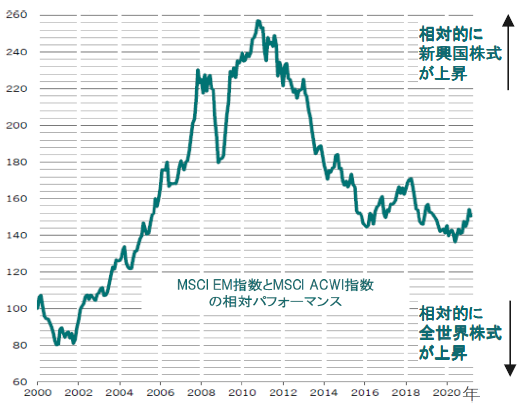 図表6:MSCI EM指数とMSCI ACWI指数の相対パフォーマンス
