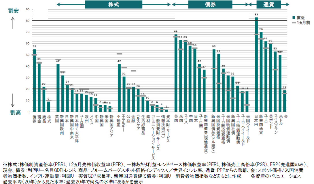 (ご参考)各資産のバリュエーション、過去平均(20年)から見た水準