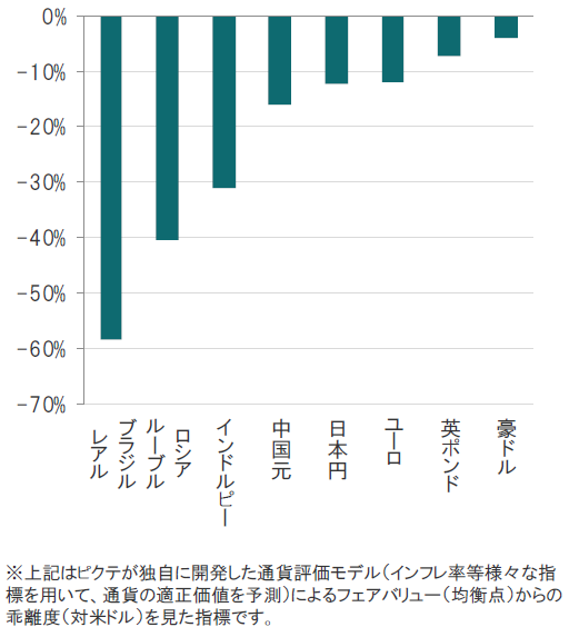 図表9:各通貨対米ドルレートのフェアバリューからの乖離