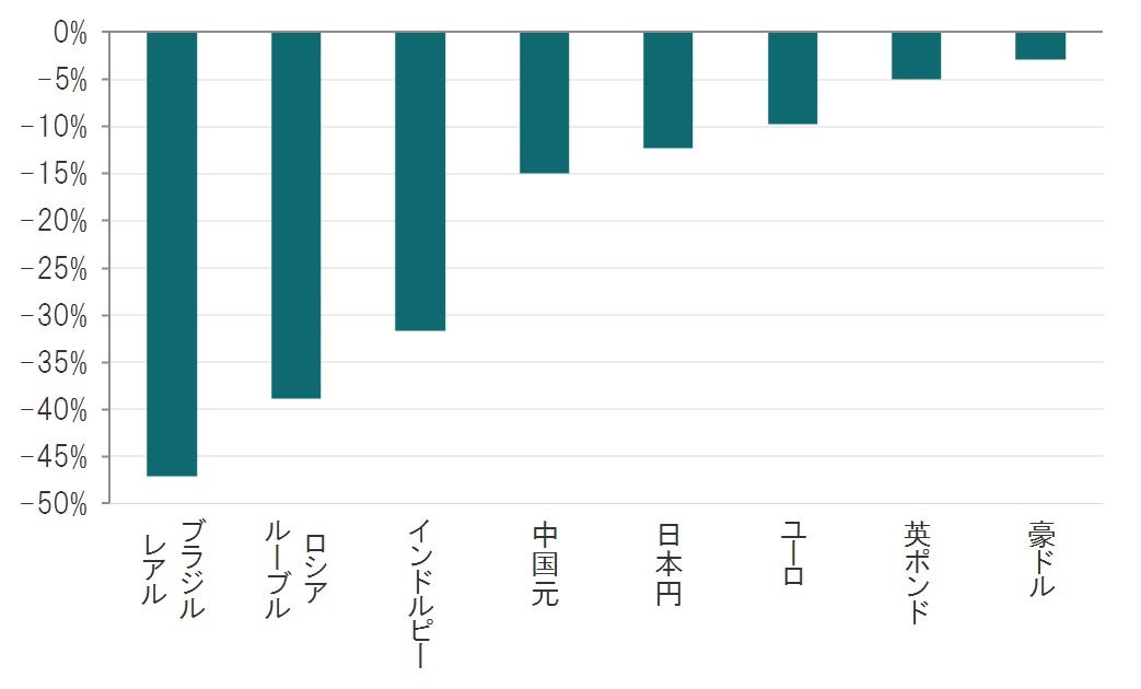 ※上記はピクテが独自に開発した通貨評価モデル(インフレ率等様々な指標を用いて、通貨の適正価値を予測)によるフェアバリュー(均衡点)からの乖離度(対米ドル)を見た指標です。