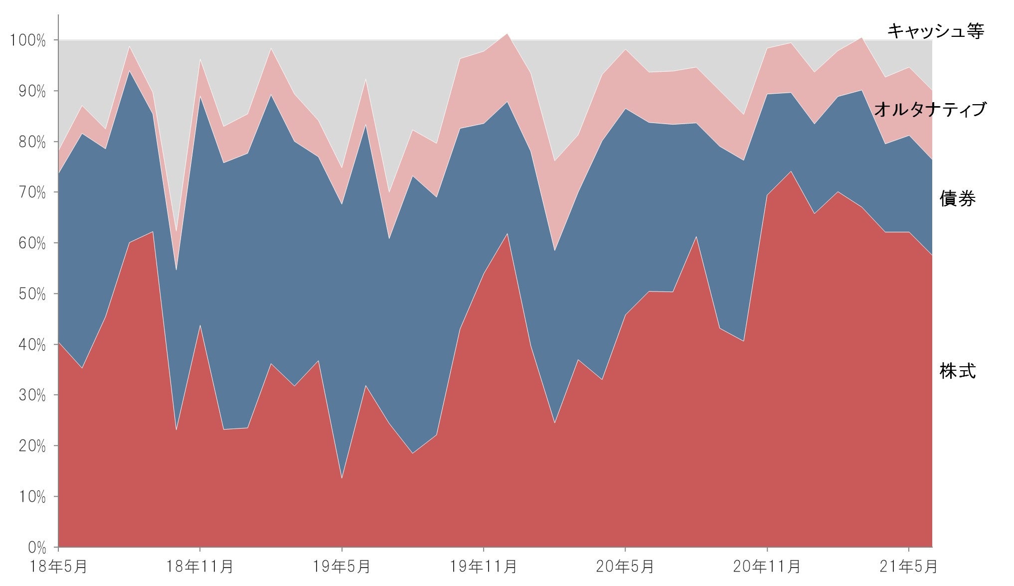 世界経済の回復や中央銀行による潤沢な流動性供給を背景に株式市場は力強さを保っています。しかし、米国では、景気回復の勢いにピークアウトの兆しが見られるほか、中央銀行の金融緩和正常化に向けた動きも鮮明になりつつあります。そのため当ファンドでは、適度なリスク量を維持しつつ、バランスを重視した運用を行っていく方針です。