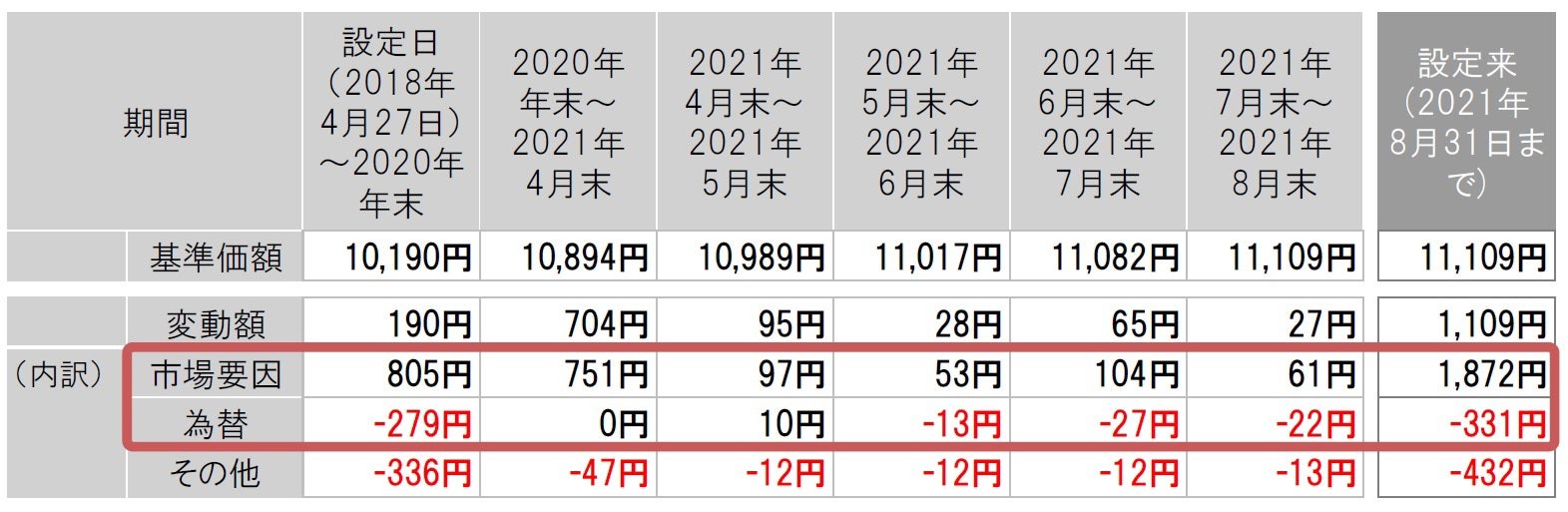 日次、円換算、期間:設定日(2018年4月27日)~2021年9月21日