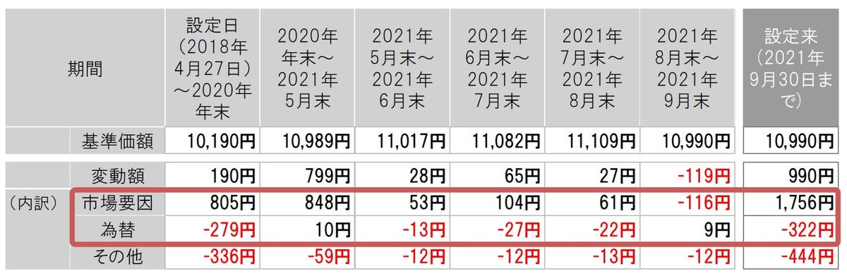 日次、円換算、期間:設定日(2018年4月27日)~2021年10月18日