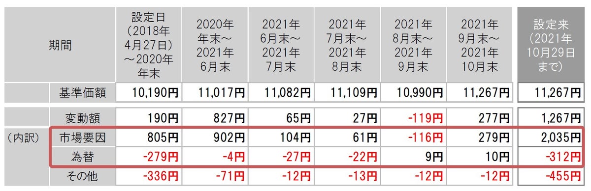 日次、円換算、期間:設定日(2018年4月27日)~2021年11月17日