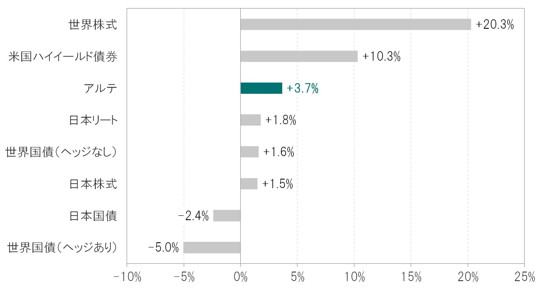 ※データは過去の実績であり、将来の運用成果等を示唆あるいは保証するものではありません。アルテの基準価額は、実質的な信託報酬等控除後、また換金時の費用・税金等は考慮しておりません。