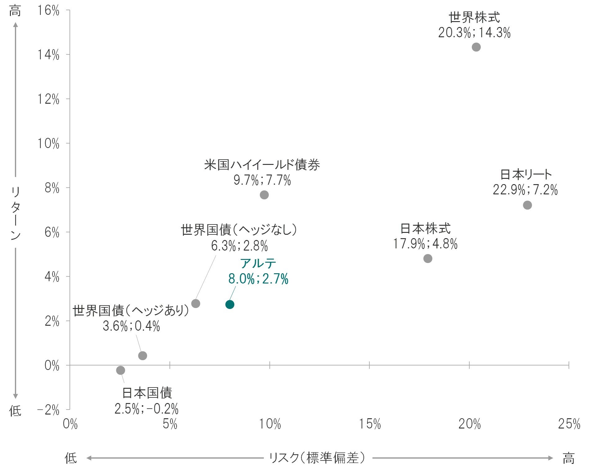 アルテの設定来の年率のリスク(標準偏差)とリターンはそれぞれ8.0%、2.7%となっています。