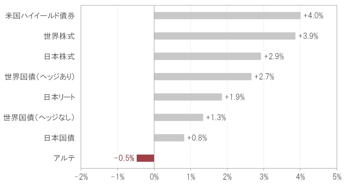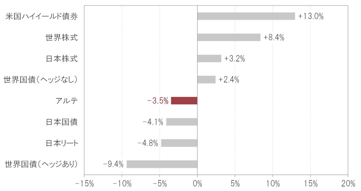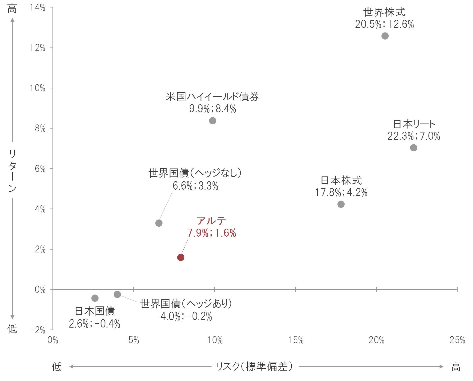 アルテの設定来の年率のリスク(標準偏差)とリターンはそれぞれ7.9%、1.6%となっています。