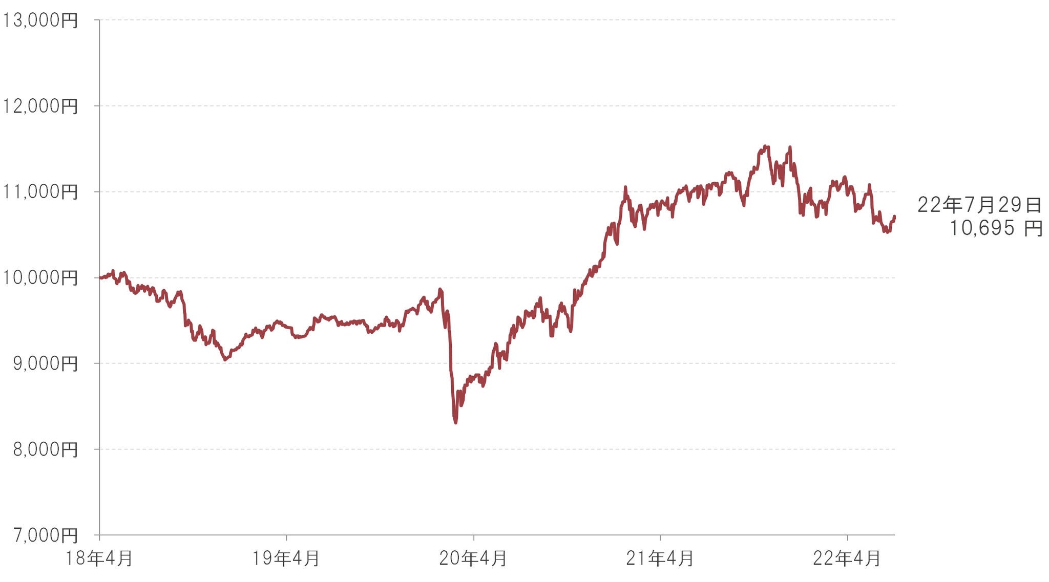 日次、円ベース、年率、期間:設定日(2018年4月27日)~2022年7月29日