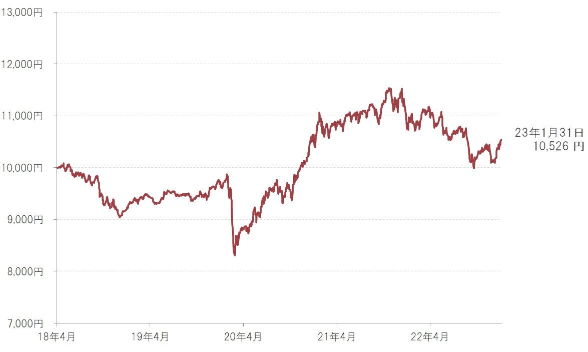 期間:設定日(2018年4月27日)~2023年1月末、単位:円