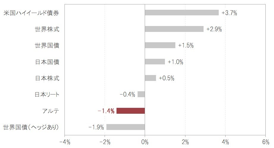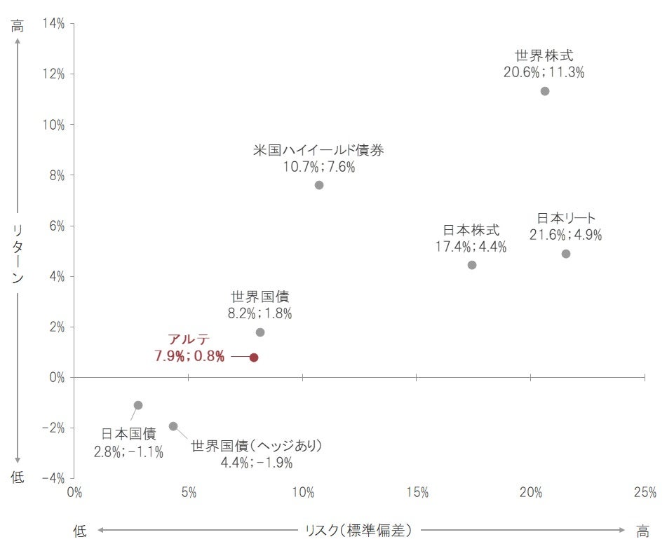 アルテの設定来の年率のリスク(標準偏差)とリターンはそれぞれ7.9%、0.8%となっています。