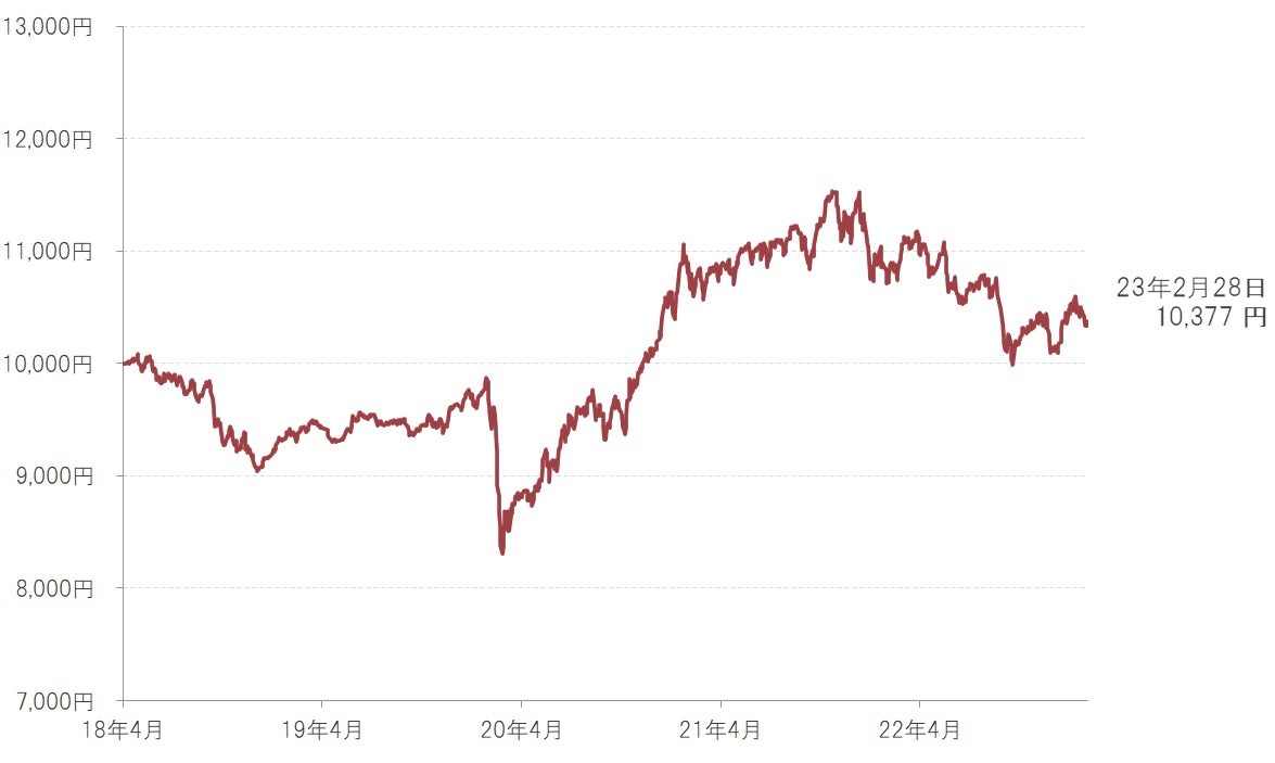 日次、円ベース、年率、期間:設定日(2018年4月27日)~2023年2月28日