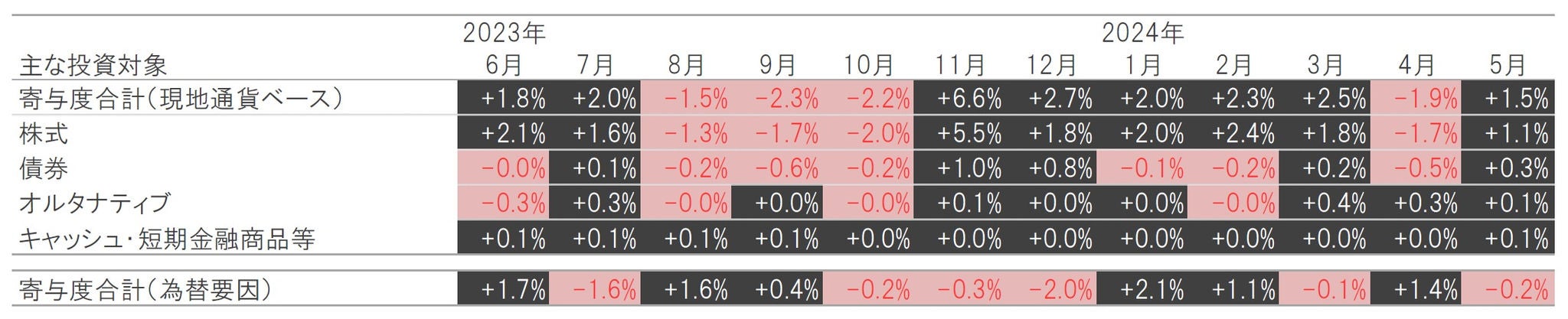 ● 2023年後半以降、株式の組入比率を高めたことなどが奏功し、市場要因のプラス寄与が大きくなりました。これに加え、主要通貨に対して円安が進行したことから、為替要因もプラスに寄与しました。