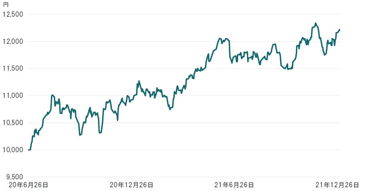 ※「2021年」の「基準価額(期末)」は2021年年末の基準価額を表します。また、「2021年」の「変動額」は2020年年末の基準価額に対して2021年年末の基準価額がどの程度変動したかを表します。なお、「2020年」の変動額については設定日(2020年6月26日)の基準価額に対して2020年年末の基準価額がどの程度変動したかを表します。設定来は2020年6月26日~2021年12月30日。