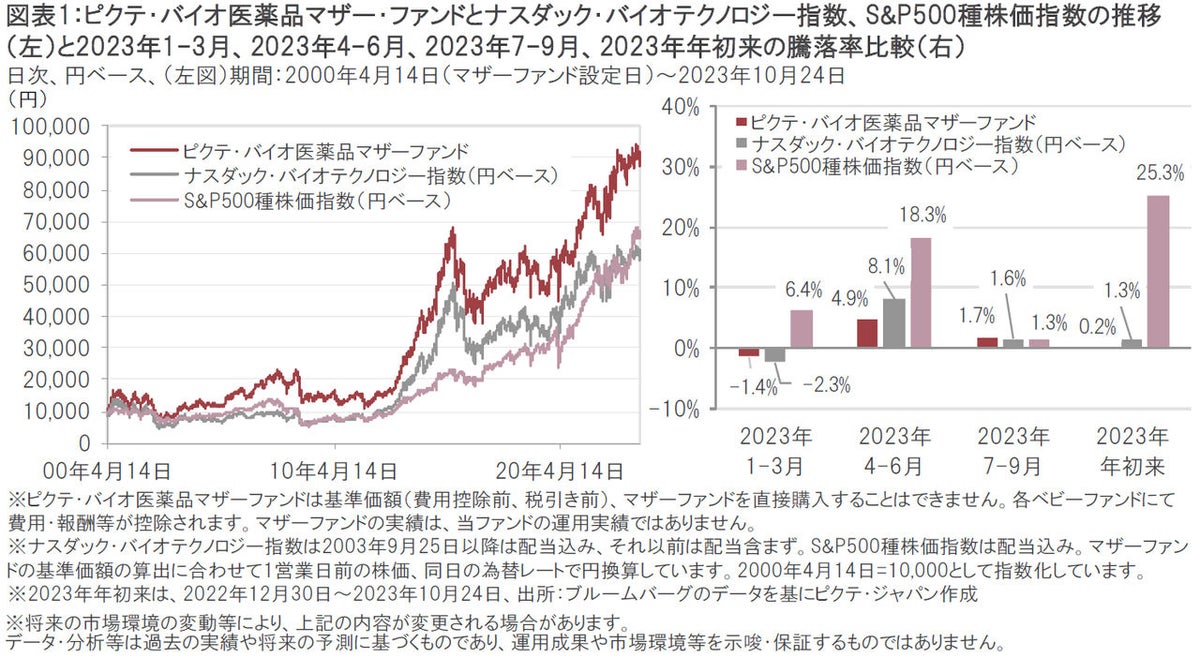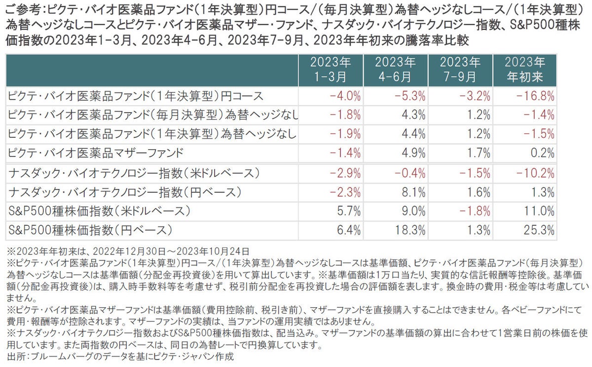 ●2023年7-9月にピクテ・バイオ医薬品マザーファンドは上昇、パフォーマンスは米国株式を小幅に上回る