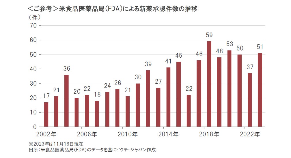 また、現時点で有効な治療薬が存在しない非アルコール性脂肪肝(NASH)についてマドリガル・ファーマシューティカル(米国)が2022年12月に良好な治験結果を発表、2023年9月には米FDAに優先審査扱いで承認申請が受理されたことや、アペリス・ファーマシューティカルズ(米国)とアイベリック・バイオ(米国、アステラス製薬が買収)の地図状萎縮(GA)の治療薬が2月17日(アペリス・ファーマシューティカルズ)と8月4日(アイベリック・バイオ)にそれぞれ米FDAから承認を受けたことなどが注目されました。
